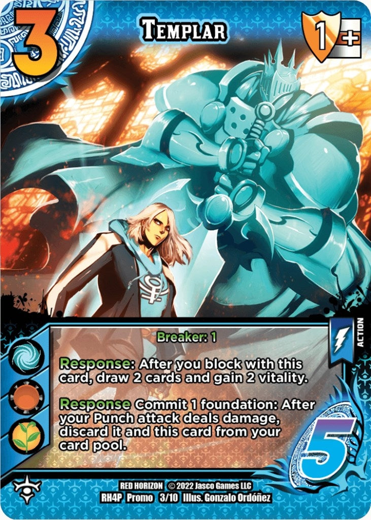 | Description: | R [Card Pool]: After you block with this card; draw 2 cards and gain 2 vitality. R Commit 1 foundation: After your Punch attack deals damage; discard it and this card from your card pool. |