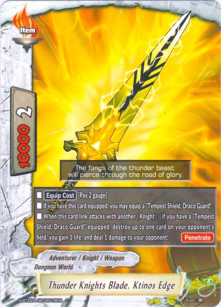 If you have this card equipped, you may equip a "Tempest Shield, Draco Guard". When this card link attacks with another "Knight", if you have a "Tempest, Draco Guard" equipped, destroy up to one card on your opponent's field, you gain 1 life, and deal 1 damage to your opponent! [Penetrate] |