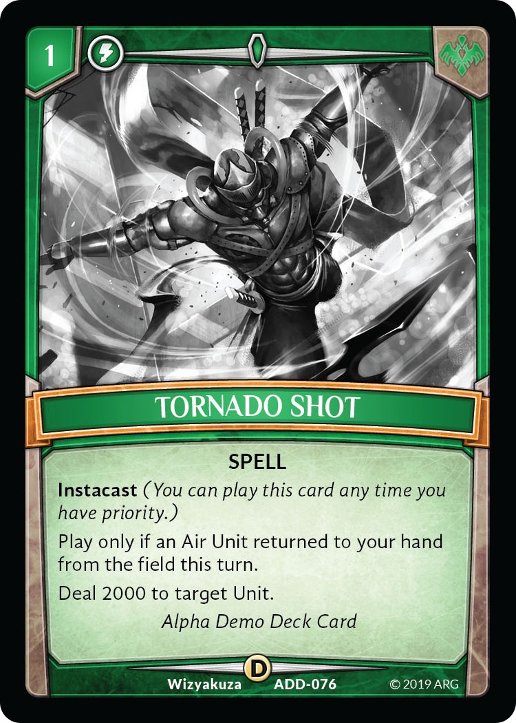 Instacast (You can play this card any time you have priority.) Play only if an Air Unit returned to your hand from the field this turn. Deal 2000 to target Unit. |