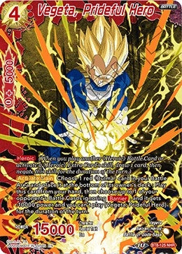 [Activate:Main] Choose 1 red "Bulma" card in your Battle Area and place it at the bottom of its owner's deck : Play this card from your hand, then choose up to 1 of your opponent's Battle Cards ignoring Barrier, and it gets -10000 power and you can't play {Vegeta, Prideful Hero} for the duration of the turn. |