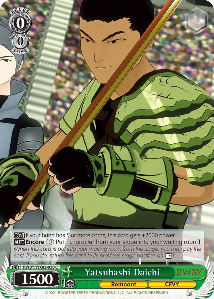 Card Text: | [CONT] If your hand has 5 or more cards, this card gets +2000 power. [AUTO] Encore [(1) Put 1 character from your stage into your waiting room] (When this card is put into your waiting room from the stage, you may pay the cost. If you do, return this card to its previous stage position as [REST]) |