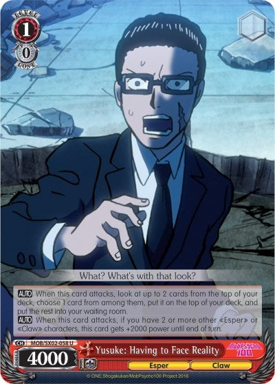 [AUTO] When this card attacks, if you have 2 or more other "Esper" or "Claw" characters, this card gets +2000 power until end of turn. |