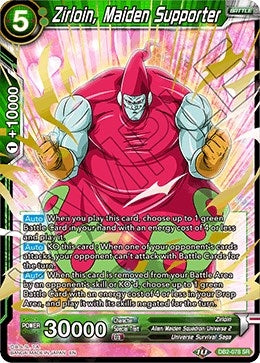 [Auto] KO this card : When one of your opponent's cards attacks, your opponent can't attack with Battle Cards for the turn. [Auto] When this card is removed from your Battle Area by an opponent's skill or KO'd, choose up to 1 green Battle Card with an energy cost of 4 or less in your Drop Area, and play it with its skills negated for the turn. |