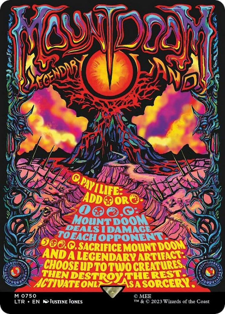 1BR, T: Mount Doom deals 1 damage to each opponent. 5BR, T, Sacrifice Mount Doom and a legendary artifact: Choose up to two creatures, then destroy the rest. Activate only as a sorcery. |