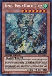 If this card is in your hand or Graveyard: You can banish a total of 2 WIND and/or Dragon-Type monsters from your hand and/or Graveyard, except this card; Special Summon this card. During your opponent's End Phase, if this card was Special Summoned: Return it to the hand. You can discard this card and 1 WIND monster to the Graveyard; add 1 Dragon-Type monster from your Deck to your hand. If this card is banished: You can add 1 WIND Dragon-Type monster from your Deck to your hand. You can only use 1 "Tempest, Dragon Ruler of Storms" effect per turn, and only once that turn.