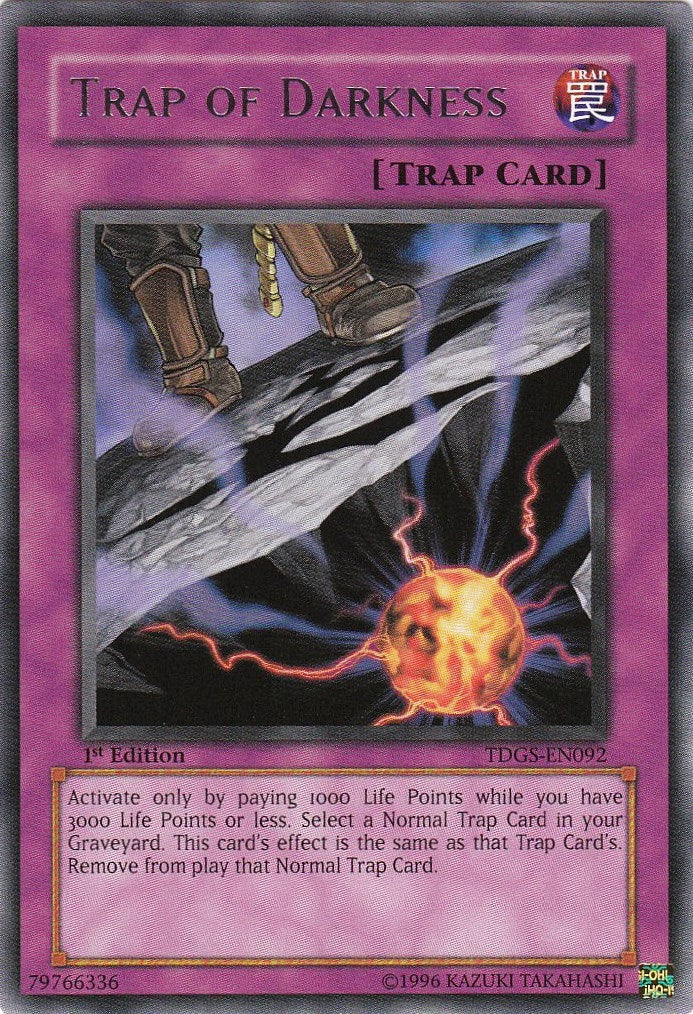 Description: | Activate only by paying 1000 Life Points while you have 3000 Life Points or less. Select a Normal Trap Card in your Graveyard. The card's effect is the same as that Trap Card's. Remove from play that Normal Trap Card. |