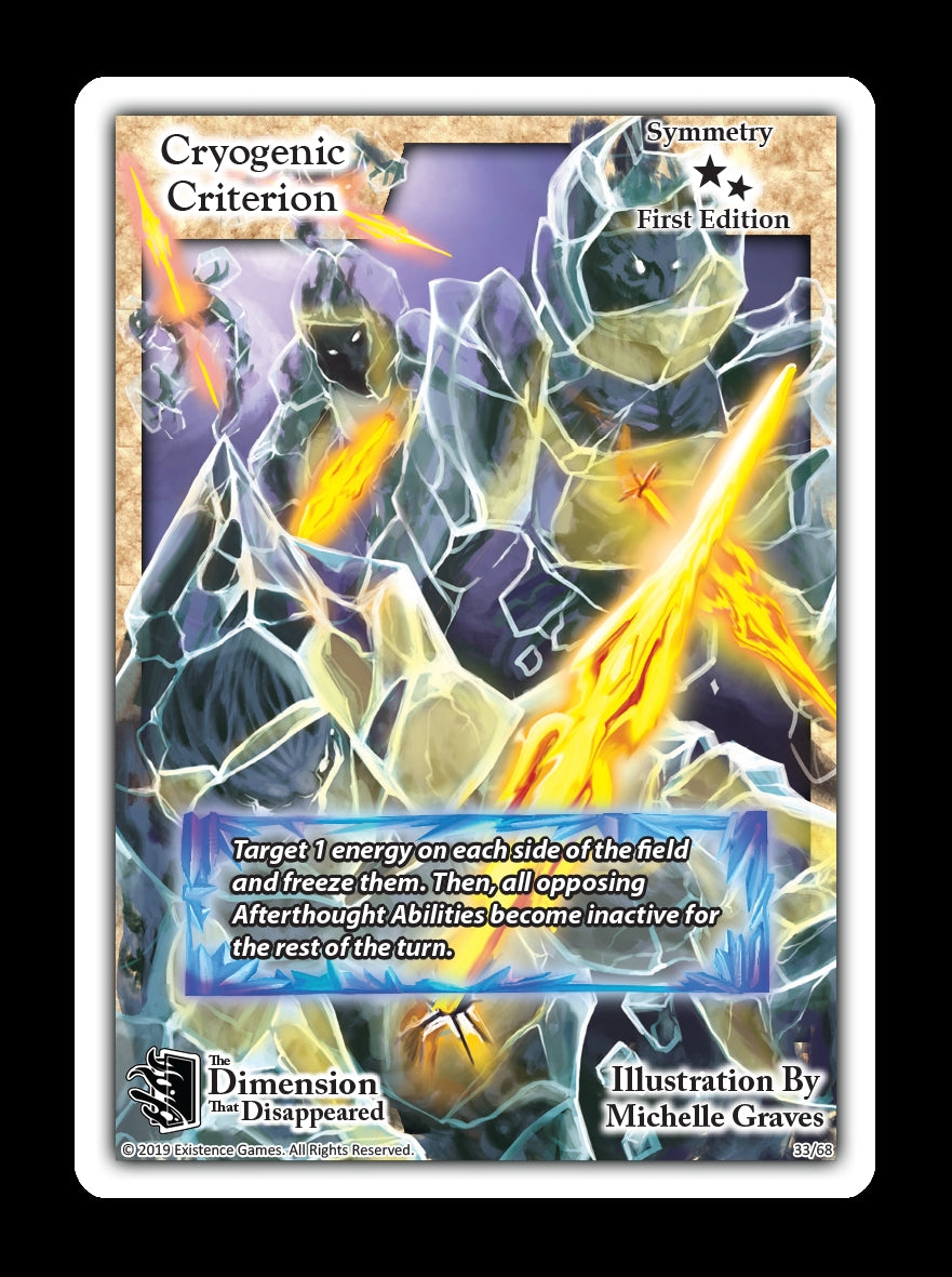 Description: | Target 1 energy on each side of the field and freeze them. Then, all opposing Afterthought Abilities become inactive for the rest of the turn. |