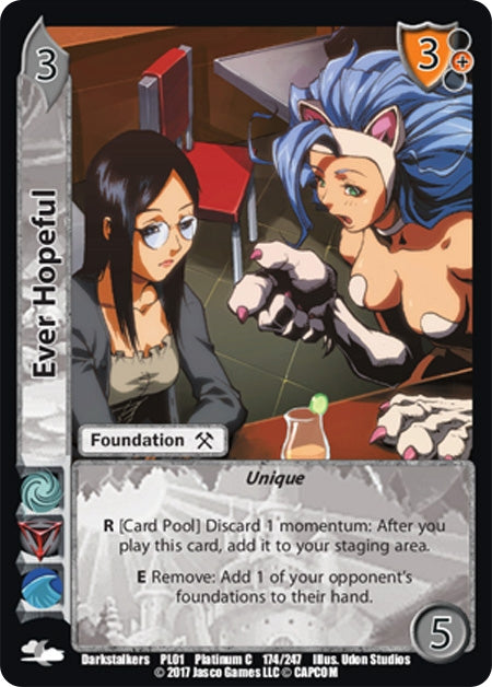 R [Card Pool] Discard 1 momentum: After you play this card, add it to your staging area. E: Add this card to your hand: Add 1 of your opponent's foundations to their hand. |