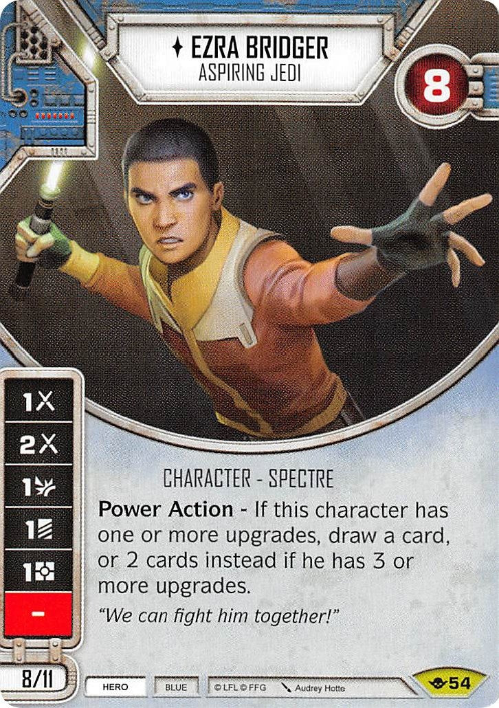 Power Action - If this character has one or more upgrades, draw a card, or 2 cards instead if he has 3 or more upgrades.