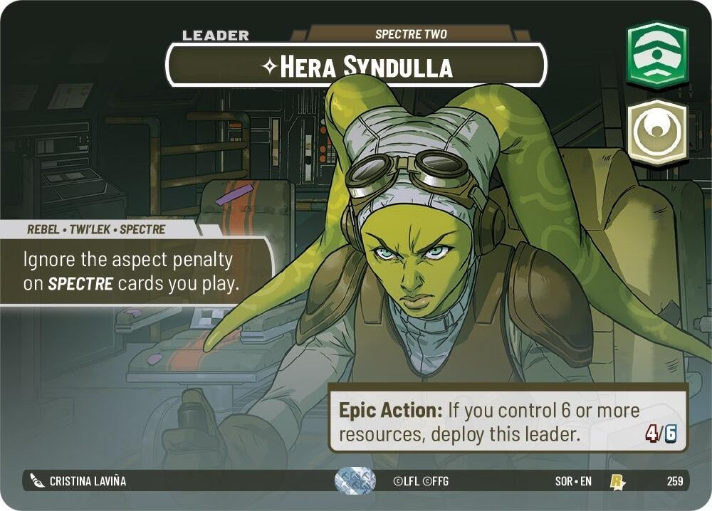 Ignore the aspect penalty on [Spectre] cards you play. Epic Action: If you control 6 or more resources, deploy this leader.