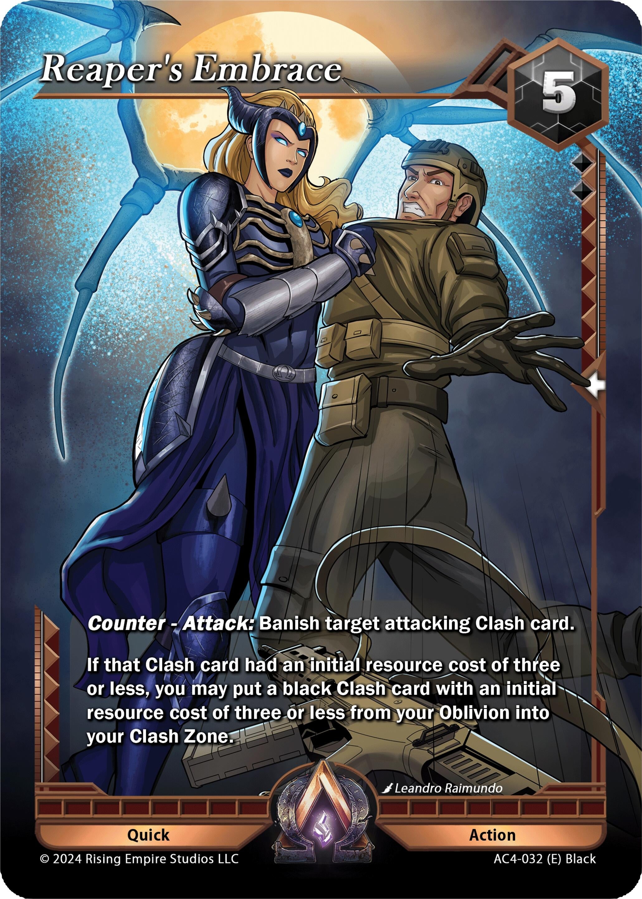 Counter - Attack: Banish target attacking Clash card. If that Clash card had an initial resource cost of three or less, you may put a black Clash card with an initial resource cost of three or less from your Oblivion into your Clash Zone. |