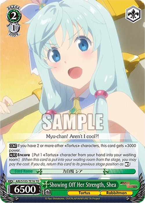 Card Text: | [CONT] If you have 2 or more other "Tortus" characters, this card gets +3000 power. [AUTO] Encore [Put 1 "Tortus" character from your hand into your waiting room] (When this card is put into your waiting room from the stage, you may pay the cost. If you do, return this card to its previous stage position as [REST]) |